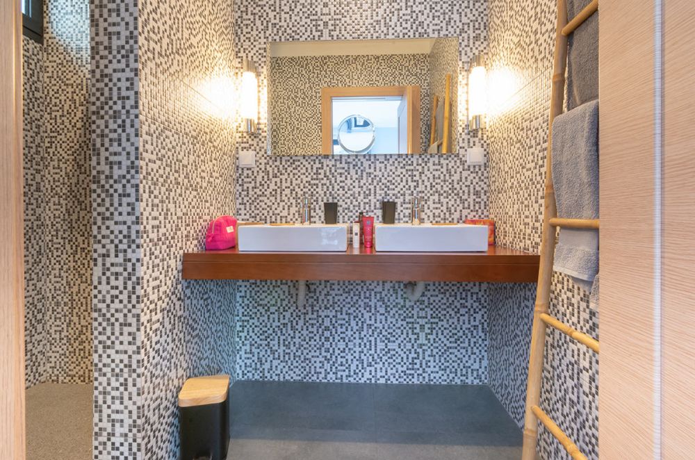 Le salon est équipé du wifi, d’un grand écran Led et d’une station pour écouter la musique ou la radio, où vous voulez.